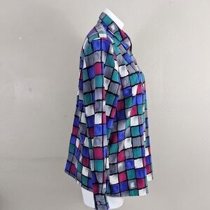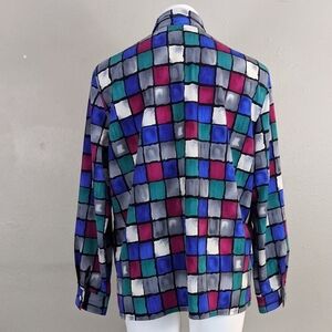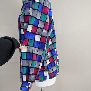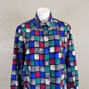 VTG Window Pane Multicolor Watercolor Button Up Long Sleeve Top