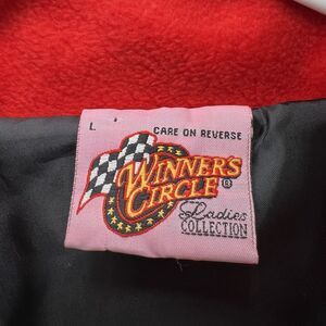 Show off your love for NASCAR with this vintage Winners Circle Dale Earnhardt Jr. Budweiser Jacket! This red jacket is made for women in size large and features the iconic Dale Earnhardt Jr. design. It is officially licensed and made in Russian Federation. This jacket is perfect for any racing fan and is a great addition to your collection. Represent Hendrick Motorsports and your favorite driver with this must-have jacket.