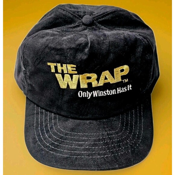 VTG Winston Hat Nascar Racing The Wrap Mens Snapback Plush Fabric Blk 90s EUC!