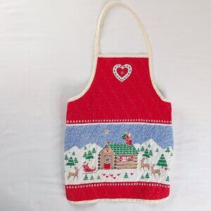 VTG Winter Red Green Quilted Log Cabin Reindeer & Santa Heart Apron Reversible