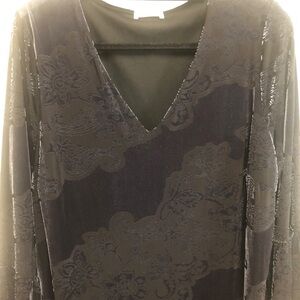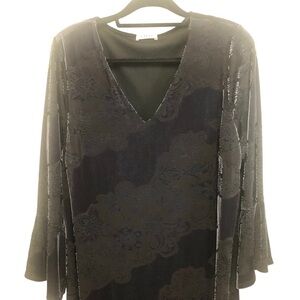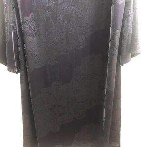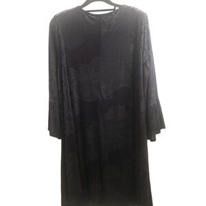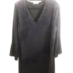 Gilli Velvet Shine V Neck Patterned Black Purple Midi Bell Sleeve Whimsical Goth Witchycore Dress Lined Plus Women’s 2X Made in USA