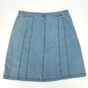 VTG Woman Within Brass Button Front Knee Length A-Line Faded Jean Skirt Size 14W