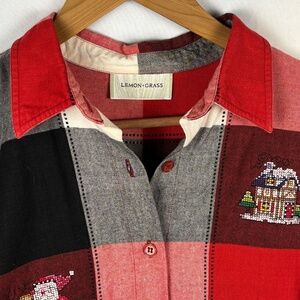 VTG Women Christmas Long Sleeve Button Up Embroidered Shirt Sz L Lemon Grass