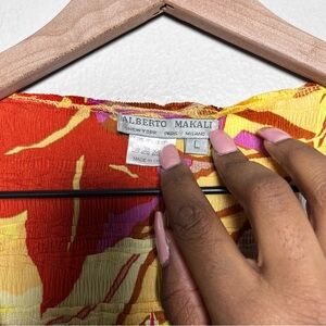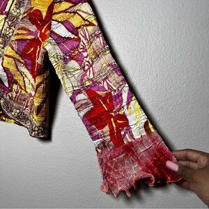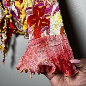 Alberto Mikali VTG Women Festival Top Large Floral Tie Front Colorful Boho Fairy Retro 70s Disco Hippie