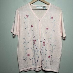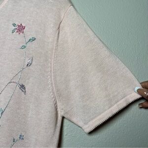VTG Women Knit Cardigan Sweater Medium Pink Coquette Grannycore Grandma Floral Embroidered