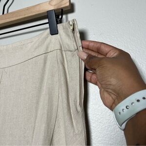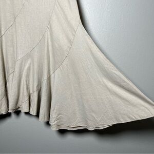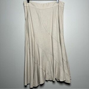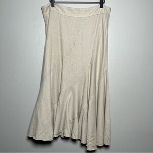 VTG Women Linen Skirt Medium Tan Ruffle Trim Academia Minimalist Midi Flutter