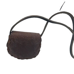 VTG Women Mexican Brown Leather Floral Tooled Mini Shoulder Boho Bag Purse 4"x4". Pre-owned