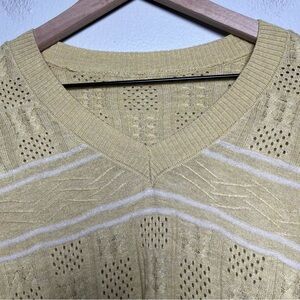 VTG Women Sweater Medium Yellow Cable Knit V-Neck Tennis Prep Sporty Lightweight Eyelet Open Knit