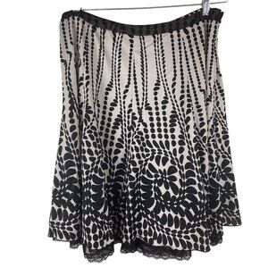 VTG Womens 12 Black White Polka Dot Flowy Feminine Lace Trim Hem Skirt