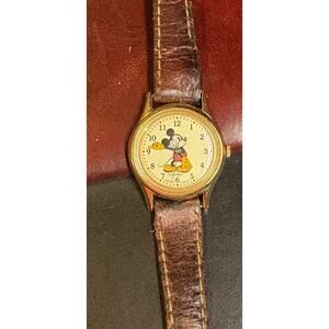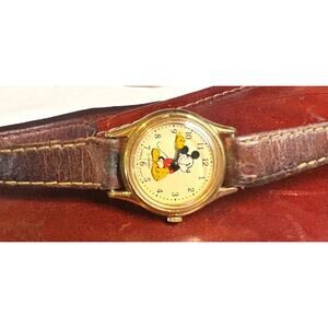 VTG Women's 25mm Gold Tone Mickey Mouse watch by Lorus, Leather Band