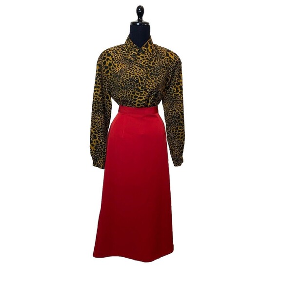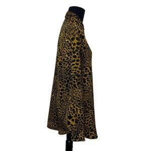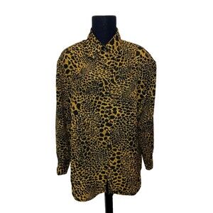 Vintage Womens Animal Print Button Up Shirt M Tan Black Retro 90s Cheetah Mob Wife