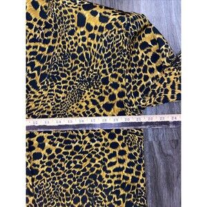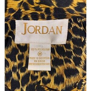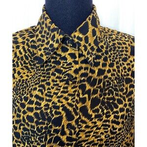 VTG Womens Animal Print Button Up Shirt M Tan Black Retro 90s Cheetah Mob Wife