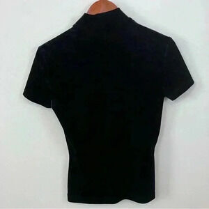VTG Womens Black Velvet Floral Stretchy Short Sleeve Tee S Mock Neck Y2K