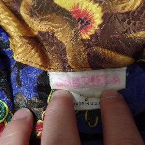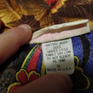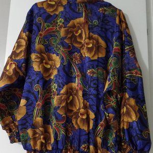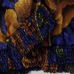 Vintage Multi-Color Women's blouse, partial button down with elastic cuffs and waist. 100% polyester size XL