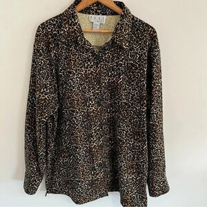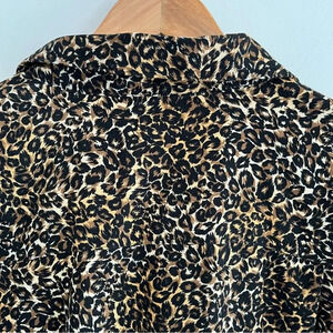 VTG Women’s Button Down Blouse XL Leopard Print Long Sleeve Animal Career Top