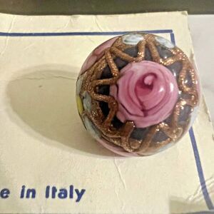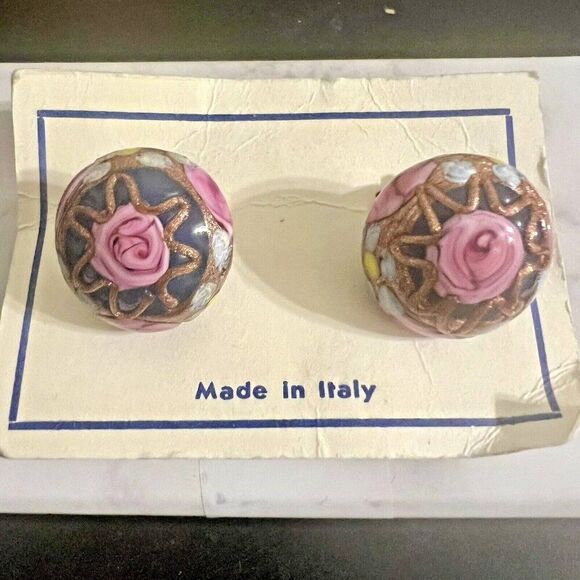VTG Womens Earrings Murano glass clip on round with floral decoration and aventurine Made in Italy.