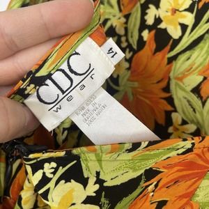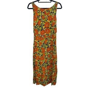 VTG Women's Floral Beaded Midi Length Dress Size 14 Orange Tie Waist CDC Wear