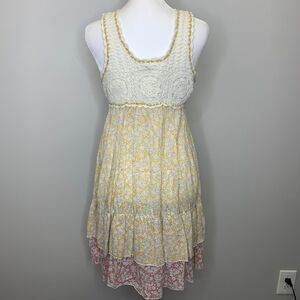 VTG Womens Funky People Crochet Floral Dress Boho Cottage Mixed Media Size Med