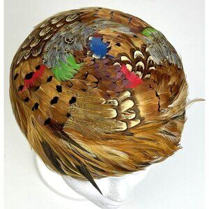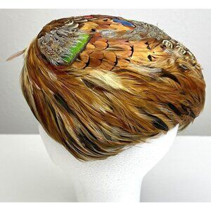 VTG Womens Genuine PHEASANT FEATHER Mid-Century Fascinator PILLBOX HAT EUC