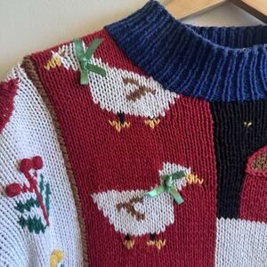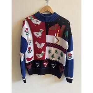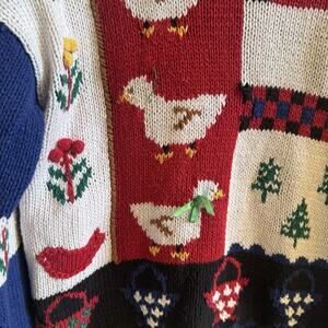 VTG Women’s L 90s Knit Easter Novelty Sweater Cottagecore Farmcore Granny Ducks