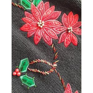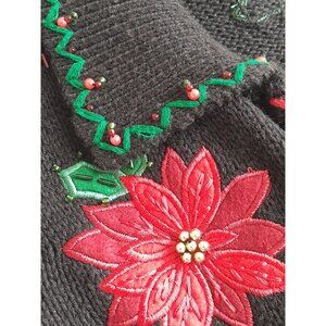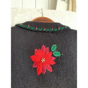 VTG Womens Large Holiday Christmas Poinsettia 3D Beaded Embroidered Cardigan