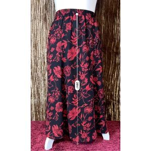 VTG Women’s Red Florals Black Midi Skirt 16W