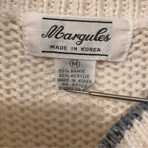 Vintage 90s sweater. 3D cable detail. Open knit. Embroidered flowers. Good condition some piling and wear at cuffs.