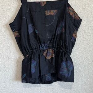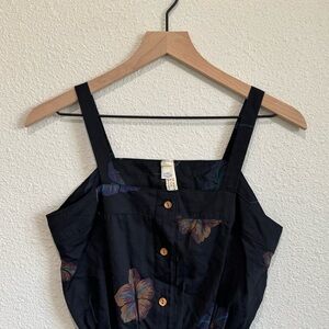 VTG Womens Union Tank Top Floral Flowers Button Front Cinched Waist Small
