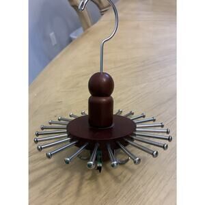 VTG Wood Tie Rack Round Hanger Spindle Closet Organizer Dark Red Brown Belts