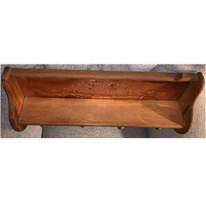 VTG Wooden Heart Cutout Wall Shelf w/ 4 Pegs & Punched Copper Pineapple Design