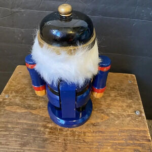 VTG Wooden Royal Palace Guard Nutcracker Soldier with Wood Hat Blue Red Uniform