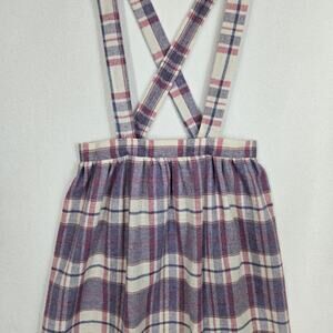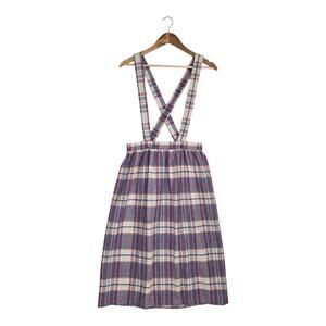 Vtg 70's Wool Blend Jumper Skirt Dress Straps Suspenders Purple Pink White plaid. Unlined.