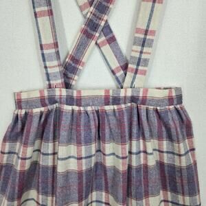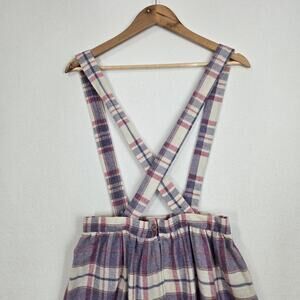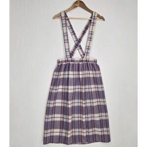 VTG Wool Blend Jumper Skirt Dress Straps Suspenders Purple Pink White Plaid