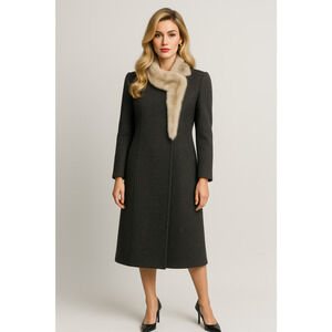 VTG Wool Dress Coat Large Gray Fur Trim Old Hollywood Mob Wife PennyLane Luxury