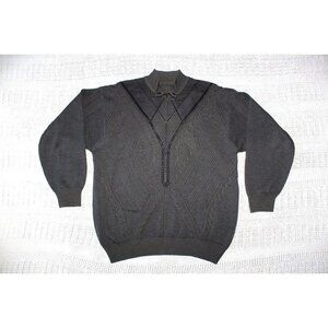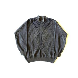 VTG Wool & leather Men Cable Knit Grey Sweater Size L Coogi Style Italy Pull on