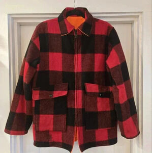 VTG Woolrich Buffalo Plaid Reversible Hunting Full Zip Jacket Red Size Medium