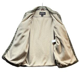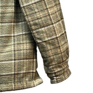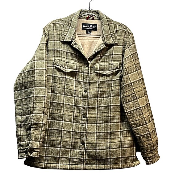 VTG Woolrich Fleece Lined Jacket Green Tan Strips Checked Sherpa-lined Flannel M