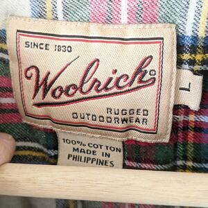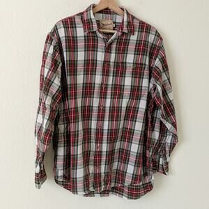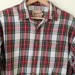 Woolrich Plaid Mens Button Down Shirt 100% Cotton Red White Green Check Large L