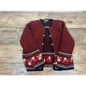 VTG Woolrich Red Cardigan Sweater 100% Wool Nordic Metal Clasps Women’s Sz M