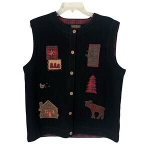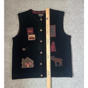 VTG Woolrich Vest Black Wool Embroidered Kitschy Cabincore Rustic Fall Size XL
