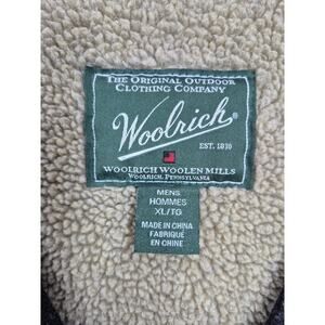 VTG Woolrich Winter Wool Vest Sherpa Lined Black w/ Charcoal Stripe Snaps MenXL