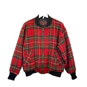 VTG Woolrich Women's Medium Red Tartan Plaid Wool Mohair Bomber Jacket GUC