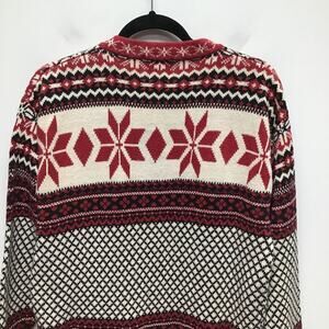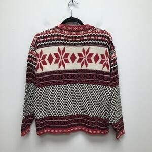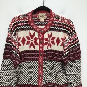 Woolrich Womens Red White Nordic Fair Isle Snowflake Button Front Cardigan M