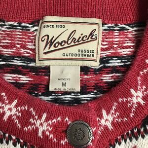 VTG Woolrich Womens Red White Nordic Fair Isle Snowflake Button Front Cardigan M