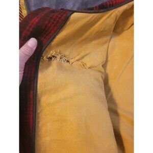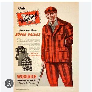 The VTG Woolrich Wool Hunting Suit is a vintage outdoor ensemble designed for those who appreciate classic American style and functionality. Made from heavyweight wool tweed with a red buffalo plaid pattern, this mid-length jacket in size 44 Long and matching pants in size 38 are perfect for fall and winter activities like hunting, hiking, and walking. The jacket features a spread collar, button closure, and zipper accents, while the pants have a regular fit. Embrace the rugged nature of the USA with this timeless and durable Woolrich Wool Hunting Suit.