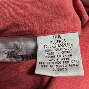 VTG Worthington 100% Silk Coral Blouse Faux Pockets & Pearl Buttons Size 18W