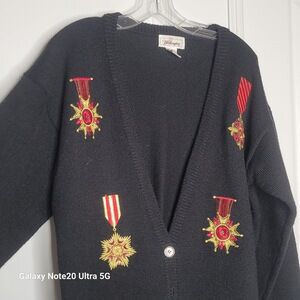 Worthington Size Large Sweater Cardigan button up Wool Blend Kitschy Metals BLUE