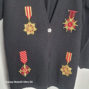 VTG. Worthington Large Sweater Cardigan button up Wool Blend Kitschy Metals BLUE