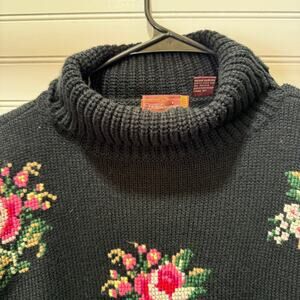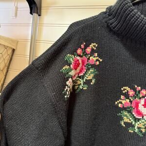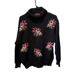 VTG Worthington Turtleneck Knit Sweater w/Cross-stitch Flowers on Front Size M