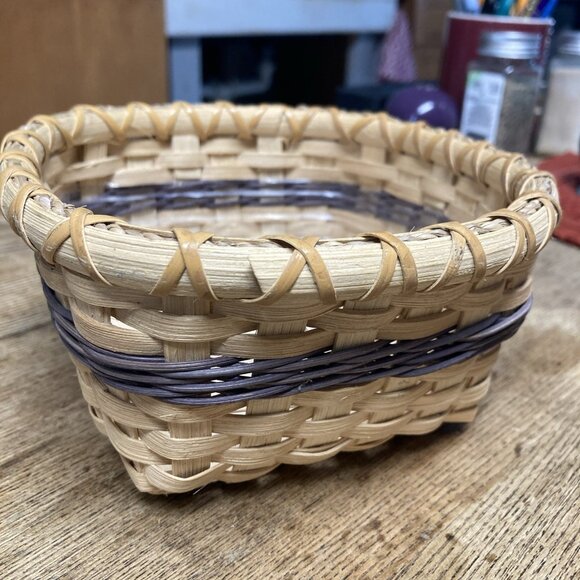 VTG Woven Basket Artisan Handmade Cottagecore Farmhouse Decor Square Signed